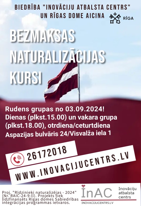 Par sadaļas NATURALIZĀCIJA LATVIJĀ saturu atbild biedrība "Inovāciju atbalsta centrs".